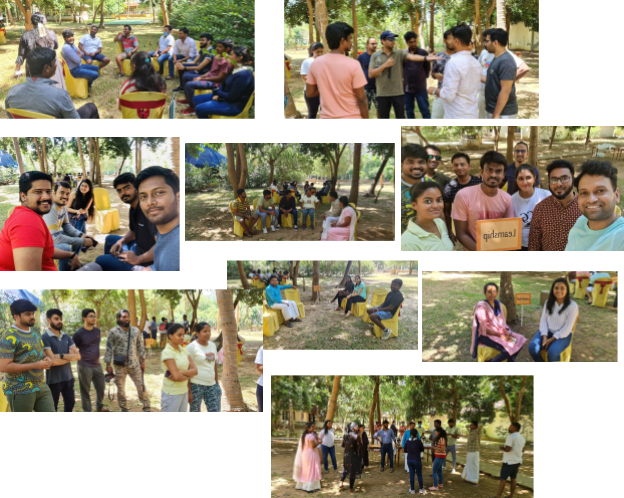 We had our team interactions inside the mango groove. Finally, everyone got to know everyone face to face in their teams. It was rejuvenating and bond-building interaction under the trees. Then Balu took over the show and was at his charming best in building his relationship with all the new folks. It was so wonderful to see the energy flowing around Balu with all the people, bringing them together, participating, and playing games with them, he for sure has won many hearts with his friendly nature, and for sure many will be looking forward to seeing him often in person.