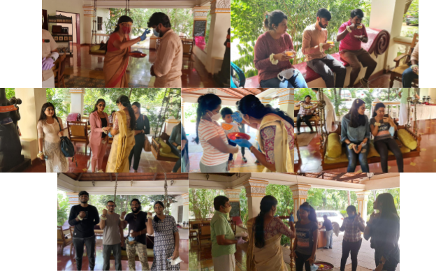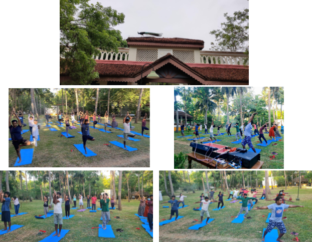 Everyone was welcomed at the resort with an elaborate sanitization process as set by the resort management and given a warm welcome with hot Kabasura Kudineer as welcome drinks along with lemon, ginger, and honey-infused hot tea. Lunch was sumptuous. As promised, drinking water was hot and induced with curry leaves. Everyone settled down nicely and had a good rest after their long journey. Evening gathering was done beautifully well under the huge tamarind tree surrounded by the Jackfruit trees.